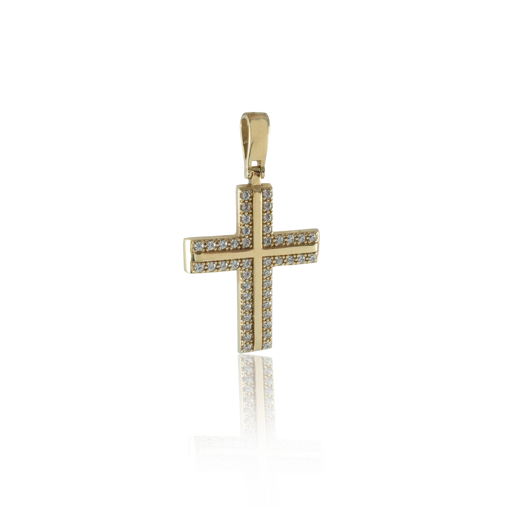 Υellow gold cross 14kt with Zircon.