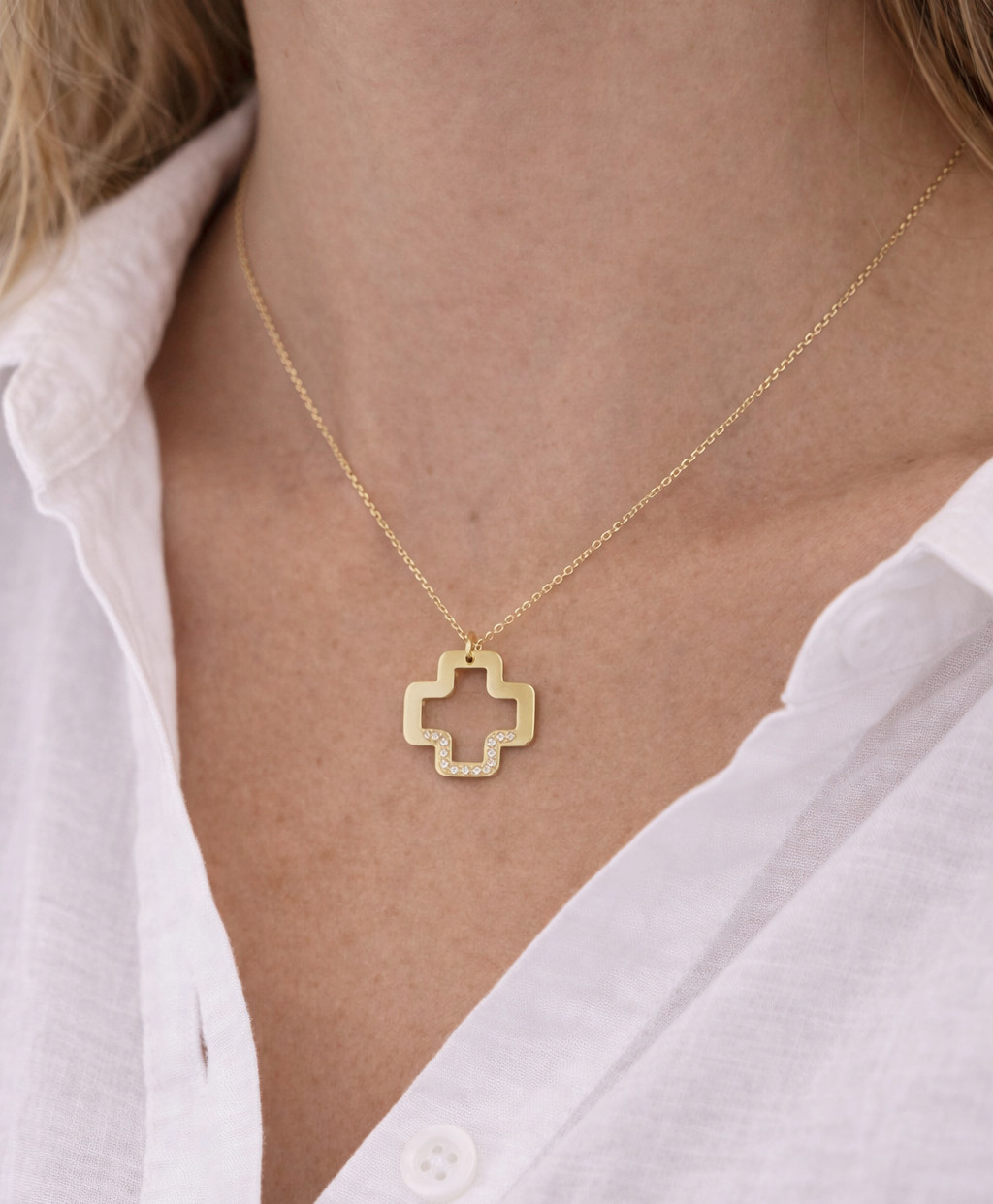 Cross with chain 14kt Yellow Gold with Diamonds