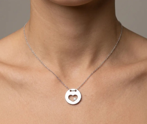 Necklace 14kt White Gold with heart and diamond with 0.006 ct.
