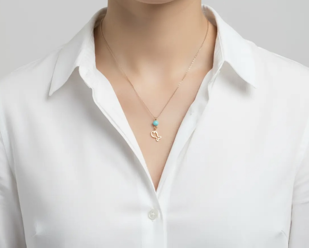 Necklace 14kt Yellow Gold with turquoise.