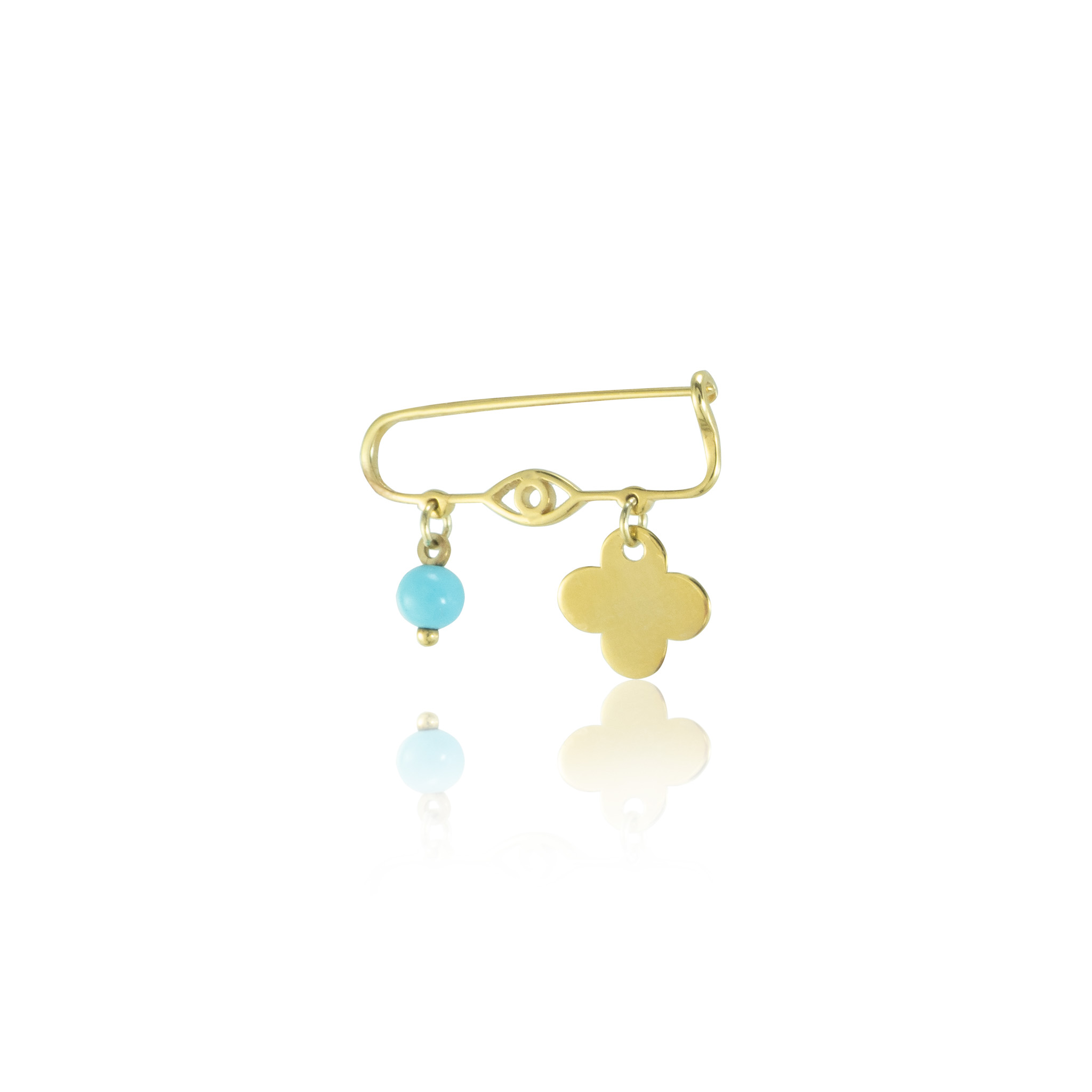 Pin 14kt Yellow Gold ‘cross’ with turquoise