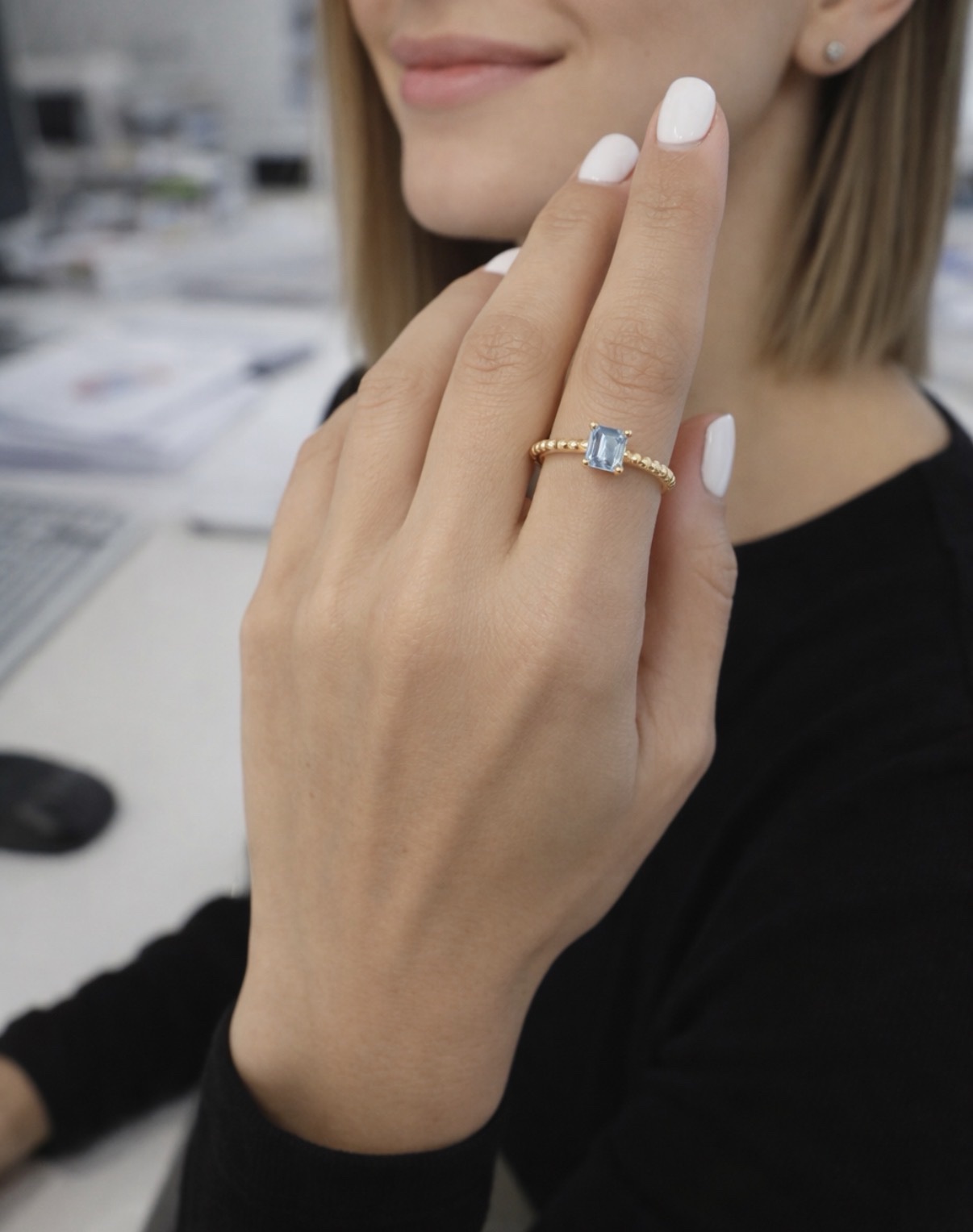 Δαχτυλίδι από Κίτρινο Χρυσό 14 καρατίων με γαλάζια πέτρα ζιργκόν.