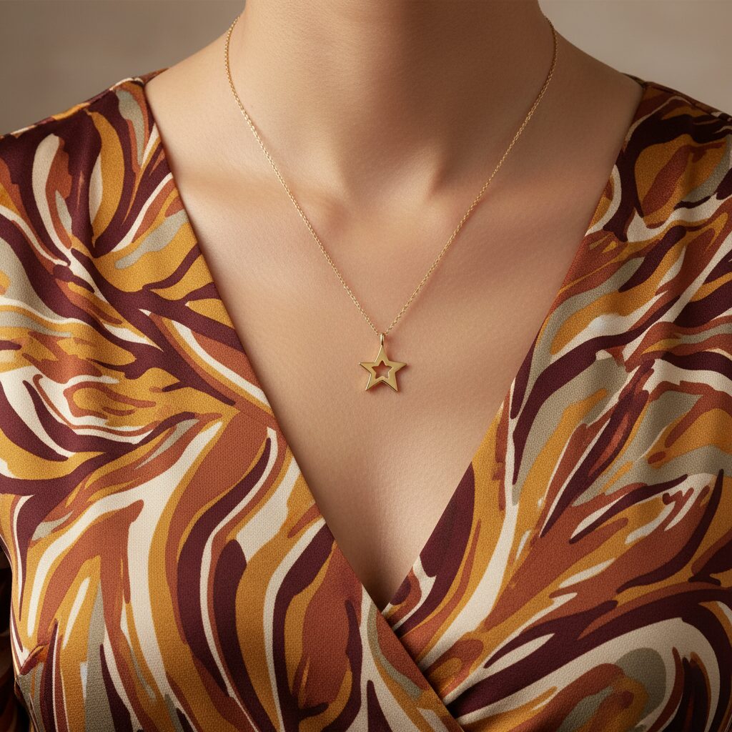 Κολιέ ‘αστέρι’ από Ροζ χρυσό 14 καρατίων.