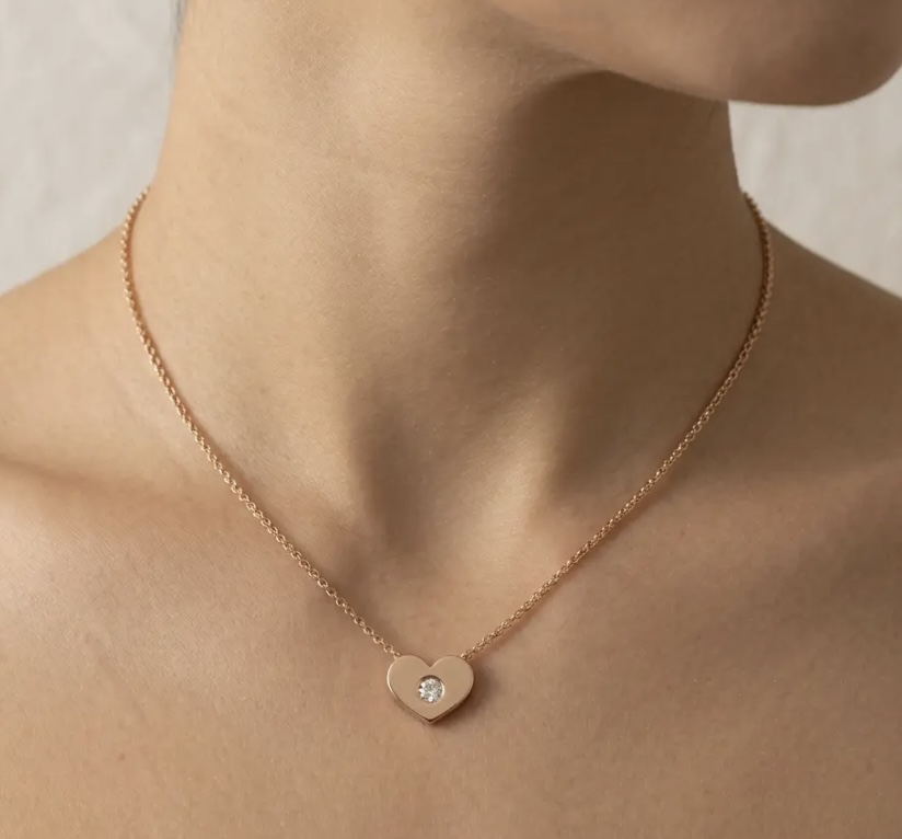 Κομψό κολιέ ‘καρδιά’ από Ροζ Χρυσό 14 καρατίων με μπριγιάν 0,02 ct.