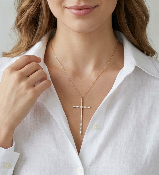 Κολιέ ‘σταυρός’ από Κίτρινο Χρυσό 14 καρατίων με ζιργκόν.