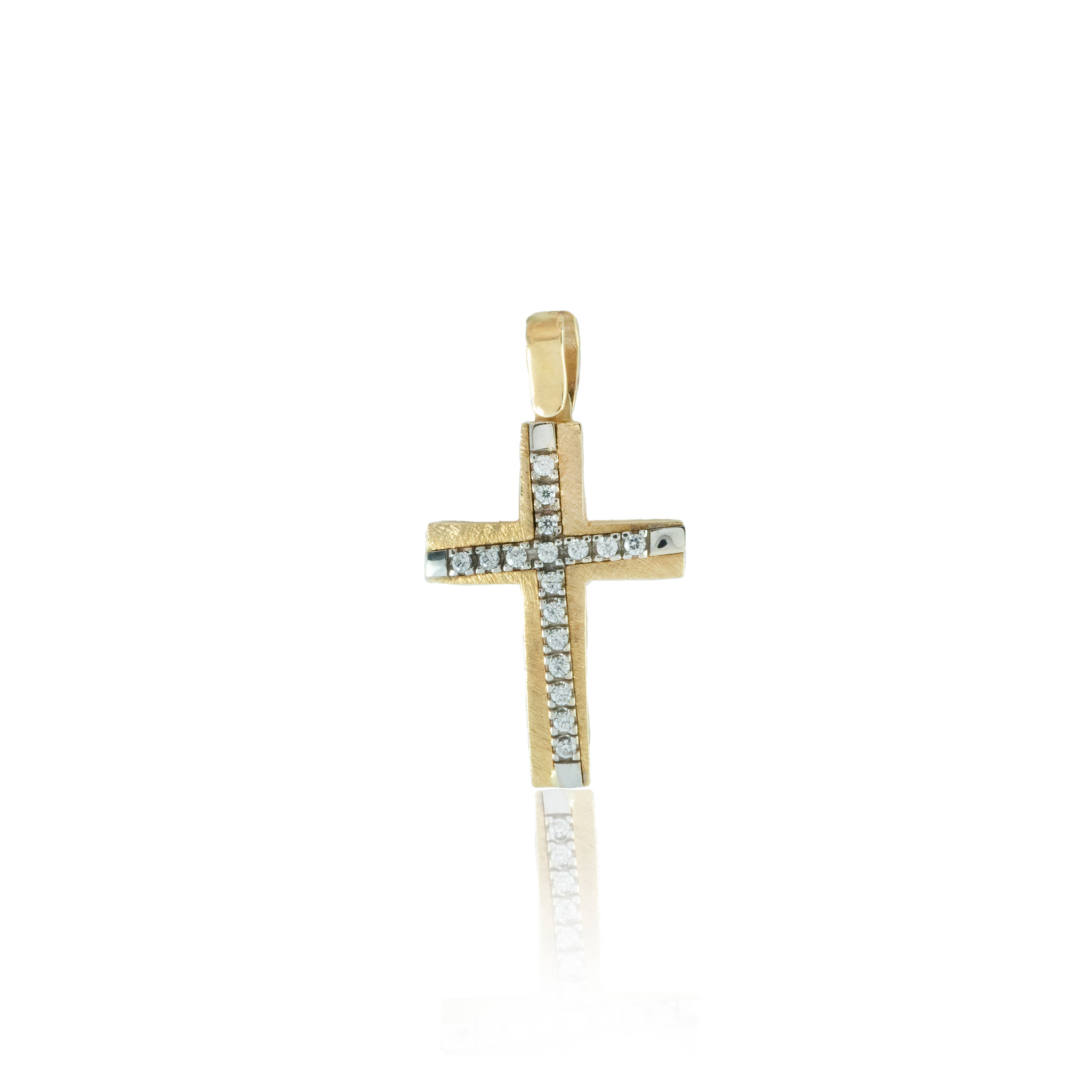 Σταυρός από Κίτρινο Χρυσό 14 καρατίων με ζιργκόν.
